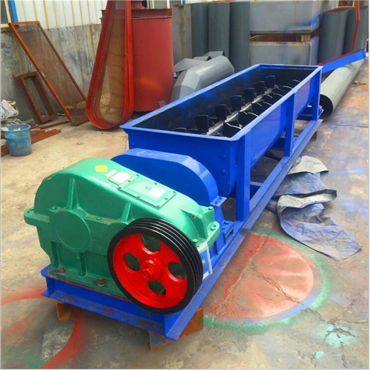 單軸粉塵攪拌加濕機由均勻供料、葉片輸料、混合擊打加濕,振動系統等四部分組成,并配以專用電控和供水系統。該設備整體固定在底座上,筒體由四組彈性元件支撐,通過激振裝置,施以震動,使整機在運轉過程中,筒體作高頻振動,使筒壁與攪拌軸之間始終保持一定的間隙,使整機運轉阻力大幅度減小,徹底杜*了悶機,堵轉現象,減小停機清理時間,提高了工作效率。供水由閥門組進行控制。為穩定本系統供水及清潔水質,管路中設置了過濾器,并由主控柜對加濕機各部分進行聯鎖控制,以達到控制供水恒濕運行的目的。攪拌加濕機具有處理量大、結構緊湊、技術、穩定可靠、維修簡單等特點。單軸粉塵加濕攪拌機經常適用于各類灰庫干灰進行噴水加濕攪拌及輸送粉狀,以達到環保外運的要求。廣泛應用于化工、礦山、電廠、鋼廠等含固體顆粒物料的加濕、攪拌和輸送。單軸螺旋輸送機1.出力大(每小時可攪拌加濕200t),加濕均勻,工作可靠。2.特制的霧化噴嘴及水量可調的給水系統,可保證物料加濕均勻。3.增加振動系統,使之克服了其處理粘性粉塵易形成筒壁粘結的問題,提高了加濕機的適應性,擴大了加濕機的應用范圍。且殼體與底座采用彈性聯接,使振打對整機無影響。4.攪拌棒采用鐵基耐磨合金或復合陶瓷制造,使用壽命長 5.殼體內襯采用鐵基耐磨合金制造,使用壽命高,避免間隙過大引起的物料自流。6.本機布置靈活,有鏈傳動和直聯兩種形式,傳動機構采用擺線式減速機。