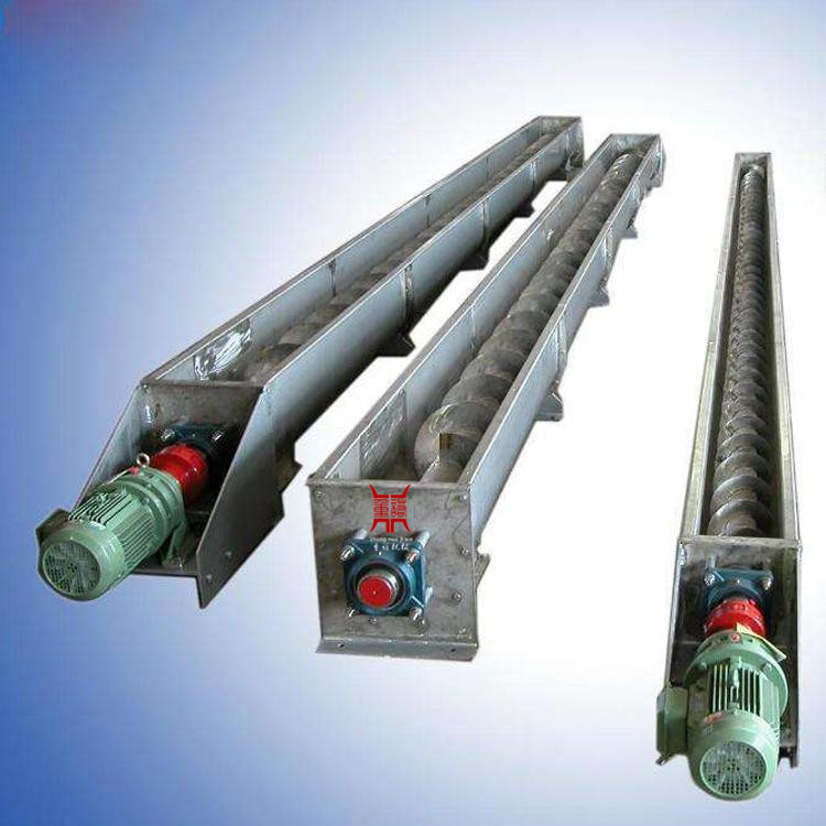 (3)螺旋輸送機(jī)的類型有水平固定式螺旋輸送機(jī)、垂直式螺旋輸送機(jī)。水平固定式螺旋輸送機(jī)是*常用的一種型式。垂直式螺旋輸送機(jī)用于短距離提升物料,輸送高度一般不大于8m,螺旋葉片為實(shí)體面型,它必須有水平螺旋喂料,以保證必要的進(jìn)料壓力。