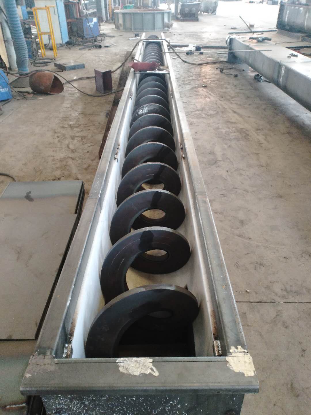 螺旋輸送機(jī)一般由輸送機(jī)本體、進(jìn)出料口及驅(qū)動(dòng)裝置三大部分組成;螺旋輸送機(jī)的螺旋葉片有實(shí)體螺旋面、帶式螺旋面和葉片螺旋面三種形式,其中,葉片式螺旋面應(yīng)用相對(duì)較少,主要用于輸送粘度較大和可壓縮性物料,這種螺懸面型,在完成輸送作業(yè)過(guò)程中,同時(shí)具有并完成對(duì)物料的攪拌、混合等功能。