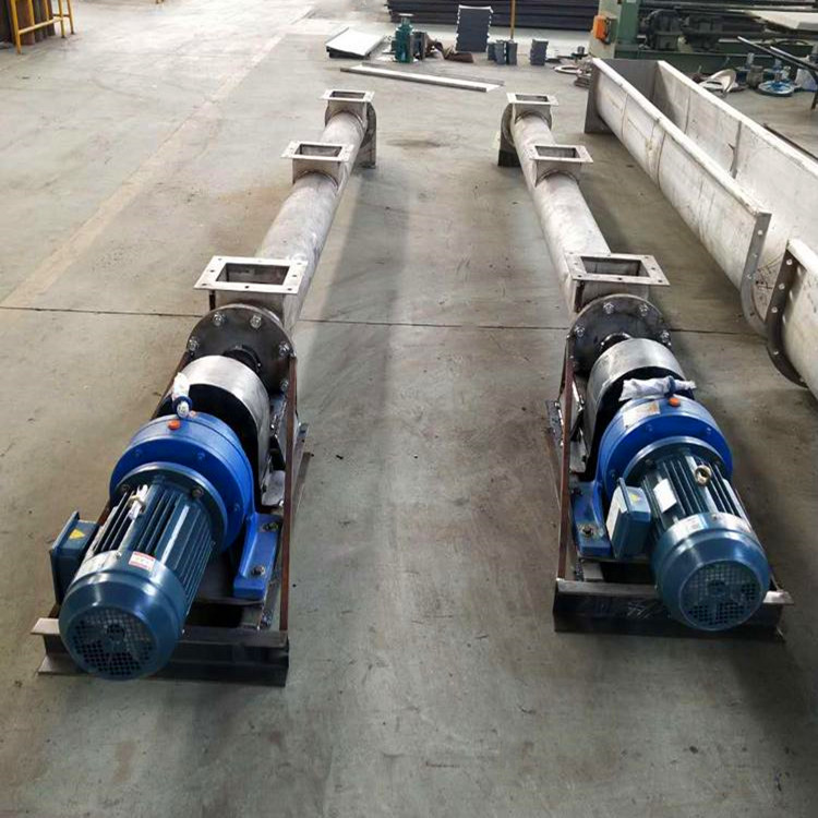 滄州重諾機械公司研發生產的管式螺旋輸送機是利用旋轉的螺旋將被輸送的物料沿固定的機殼內推移完成輸送工作的。管式螺旋輸送機頭部及尾部軸承移至殼體外,吊軸承采用滑動軸承設有 塵密封裝置,軸瓦 般采用粉末冶金,輸送水泥采用毛氈軸瓦,吊軸和螺旋軸采用滑塊連接。管式螺旋輸送機是利用螺旋旋轉而推移物料的連續輸送設備,管式輸送機適用輸送面粉、谷類、水泥、化肥、灰渣、沙子、石子、煤粉、小塊煤等物料。由于機體內有效流通面積小,管式輸送機不宜輸磅易變質的、粘性太大、易結塊的物料。管式螺旋輸送機可布置成水平或傾斜輸送形式 當水平輸送時,物料顆粒受滄州重諾到鏈片在運動方向的推力。當料層間的內摩擦力大于物料與管壁的外摩擦力時,物料就隨鏈片向前運動,形成穩定的料流;當垂直輸送時,管內物料顆粒受鏈片向上推力,因為下部給料阻止上部物料下滑,產生了橫向側壓力,所以增強了物料的內摩擦力,當物料間的內摩擦力大于物料與管內壁外摩擦力及物料自重時,物料就隨鏈片向上輸送,形成連續送料,滄州重諾公司研發生產輸送設備多年來受到廣大客戶好評,生產的圓管式輸送機適用于各種復雜條件下,輸送塊狀物料。管式螺旋輸送機和喂料機在粉狀和顆粒狀物料輸送中有著廣泛的應用。根據輸送物料的不同,可以選擇不同型號的輸送機和喂料機,例如:混凝土產品(水泥,飛 塵,填裝器塵埃,沙塵),瀝青產品(冷熱加工塵埃),建筑預拌物料(干石灰,沙子,水泥,填加劑),玻璃工藝(石灰石,純堿,沙子等),鑄造廠(沙子,班 脫土)等